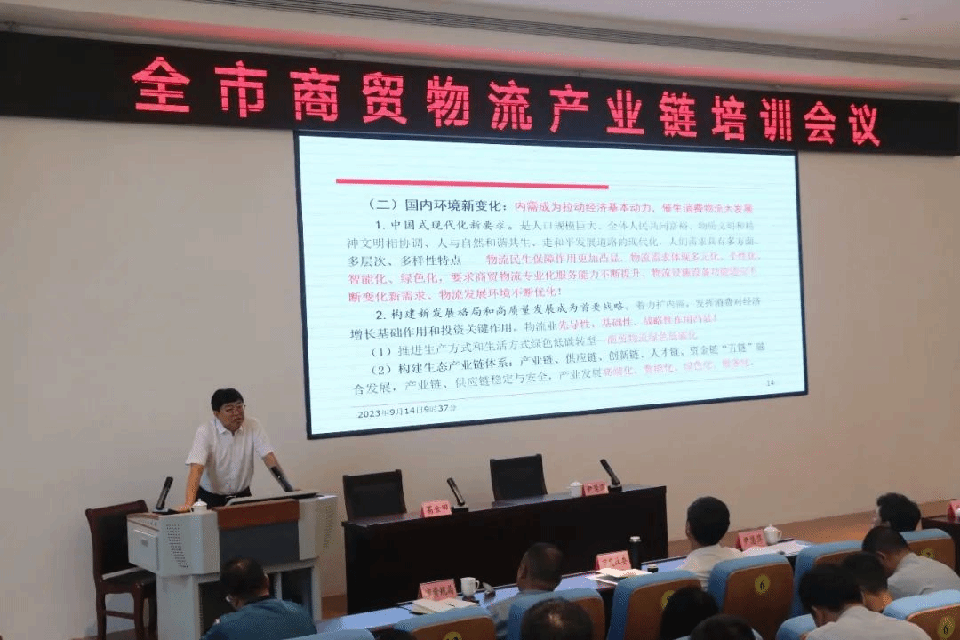 9月14日,菏泽市商贸物流产业链培训会议在市委党校召开。菏泽市商贸物流产业链链长,市委常委、组织部部长、统战部部长臧伟出席会议;市商贸物流产业链长制工作专班成员,各县(区)商贸物流产业链“链长”、服务专员、专班成员单位负责人,市纪委监委青年理论学习第七实践小组部分成员,市商贸物流产业链部分领航企业负责人等约200人参加会议;市商务局局长尹慧萍主持会议。