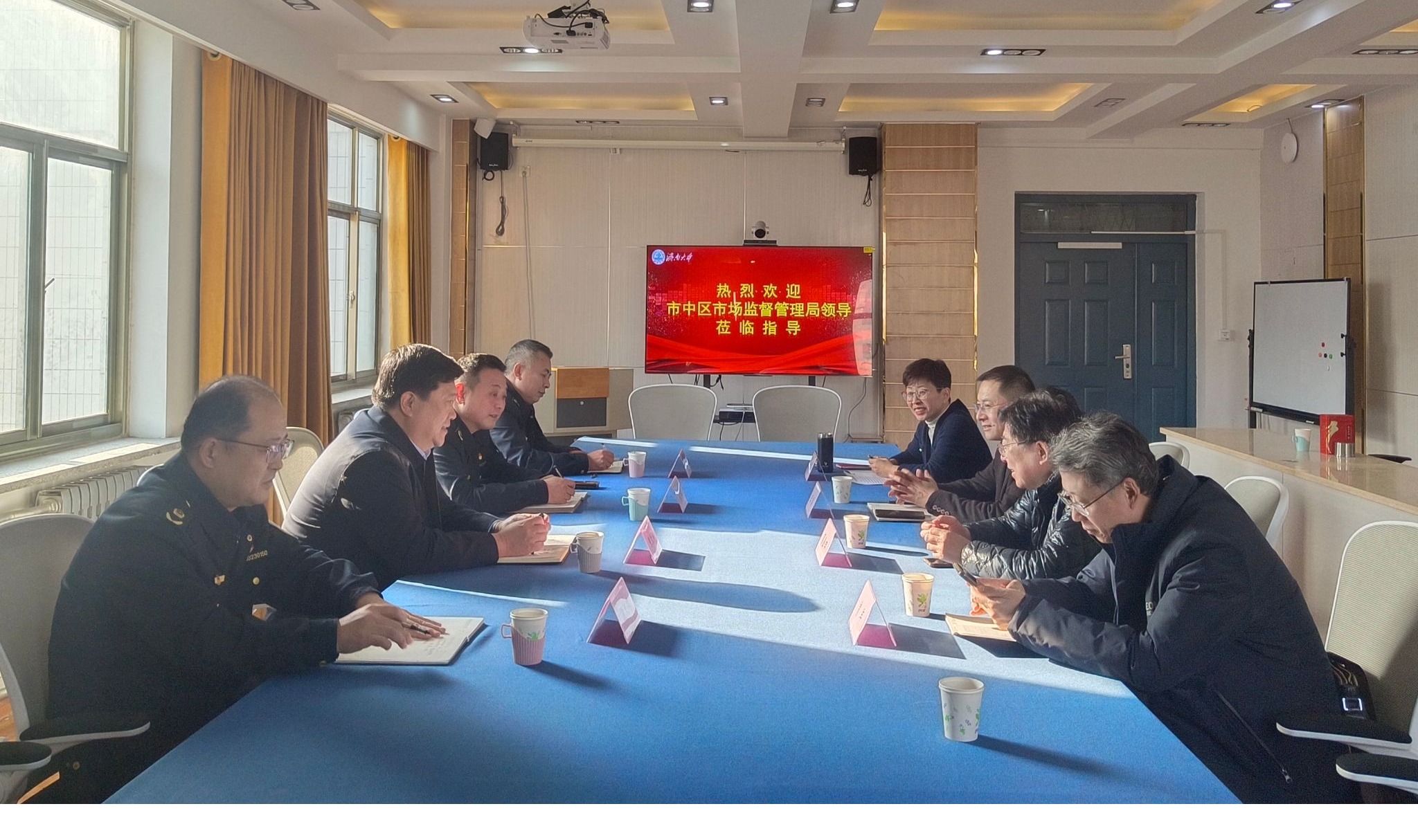 2023年1月8日,市中区市场监督管理局党组书记、局长张敬轩一行4人莅临台湾av女优 视察指导工作。台湾av女优 党委书记王勇、副院长王悦、山东物流发展研究中心主任葛金田教授以及部分教师代表参加座谈交流。
