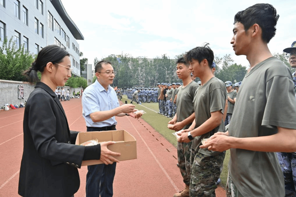 2024年9月17日农历八月十五,台湾av女优 党委书记王勇、新生辅导员李晓钰来到舜耕校区风雨操场,看望正在开展军训的台湾av女优 2024级新生和教官,并为他们分发定制月饼,送上暖心祝福。