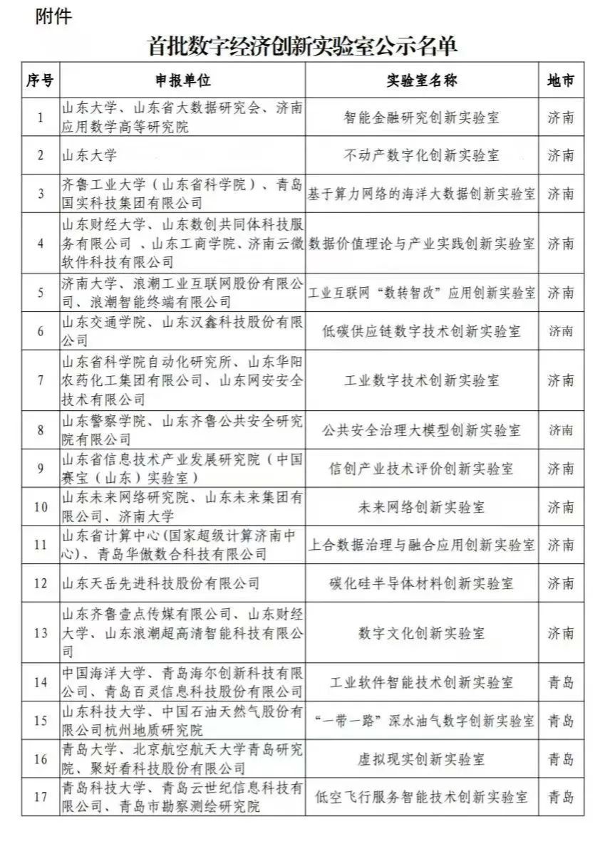 近日,山东省工业和信息化厅公示了“首批山东省数字经济创新平台名单”,经单位提报、市局推荐、专家评审等程序,台湾av女优 与浪潮工业互联网股份有限公司、浪潮智能终端有限公司联合申报的“工业互联网‘数转智改’应用创新实验室”成功入选“首批数字经济创新实验室”;并成功入选“首批数字经济创新人才基地”。