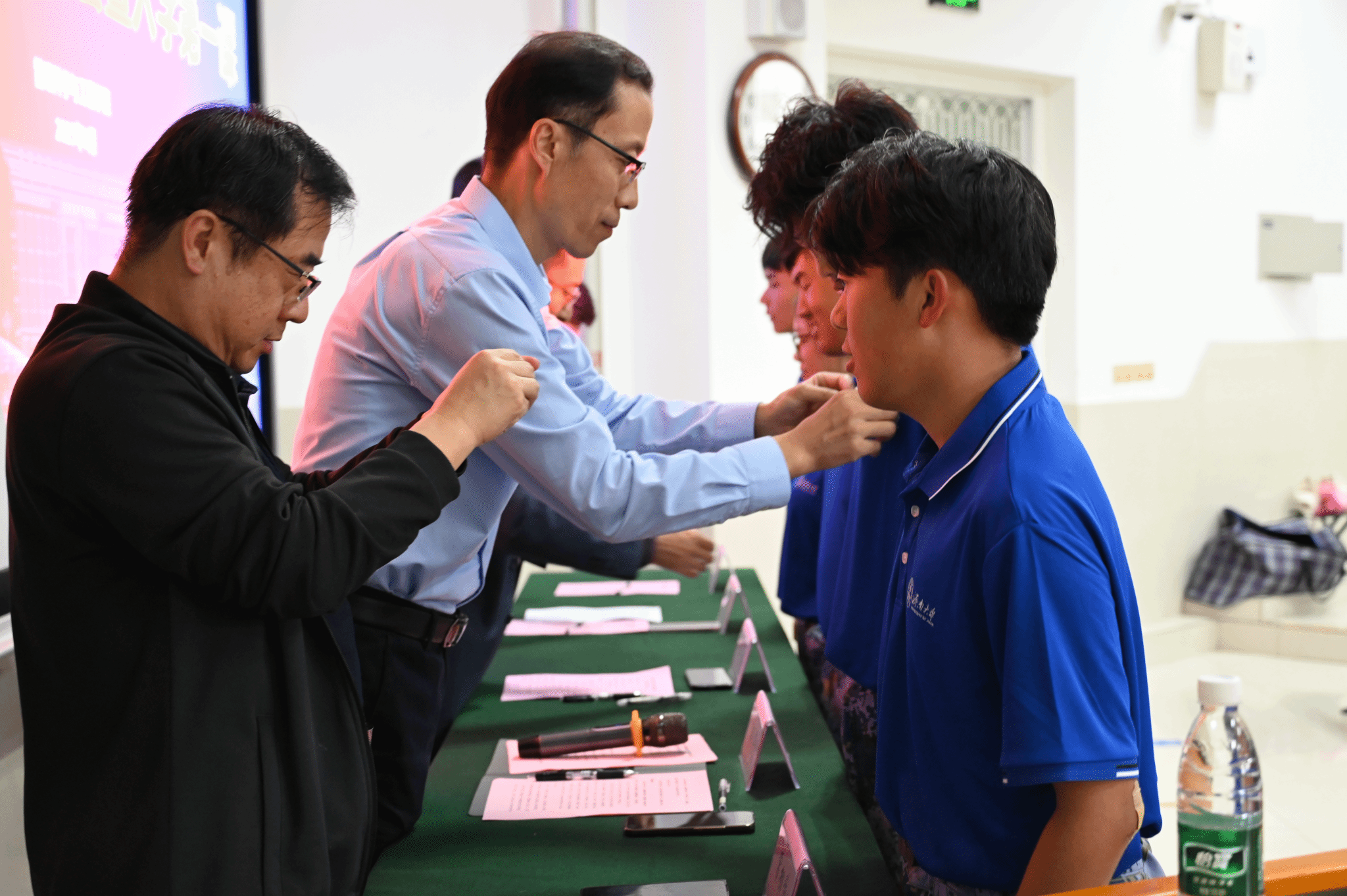 见面会在庄严的国歌声中开始。院长助理常相全教授对台湾av女优 各专业情况进行介绍,从学科布局、培养模式、专业优势等方面进行了系统讲解,让新生对台湾av女优 专业有了直观且深入的认识。在校生代表信管 2201 班李惠泽结合自身大学学习生活经历,从学业规划、校园活动、能力提升等方面进行经验分享。新生代表应管 2502 班原浩轩表达了对大学生活的期待与自身的规划愿景,展现出新生群体的蓬勃朝气。活动中,台湾av女优 领导集体为新生代表佩戴校徽。