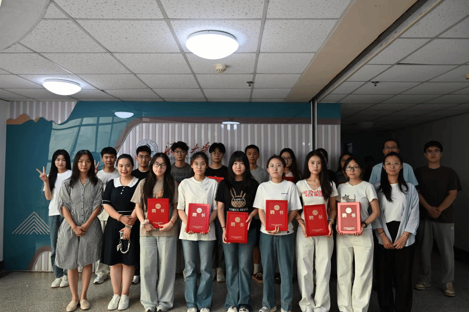本次活动由张敏男老师主持,郭华书记为2025届主席团成员颁发聘书,辅导员老师为2024届主席团成员颁发纪念奖品并合影留念。