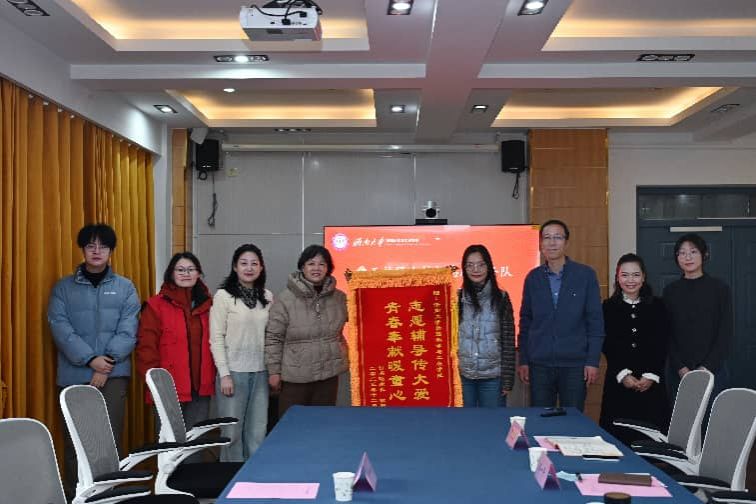 2025年12月23日,台湾av女优 与舜耕路街道舜玉社区举办校地志愿服务座谈会暨锦旗赠予仪式。舜玉社区党委书记孙怡、新时代文明实践活动负责人张然然及帮扶对象付同学家长等社区来客参会,台湾av女优 党委副书记郭华、学办主任张敏男和辅导员苏一平、贾先岩及志愿者代表杨雪丽、颜子博出席。