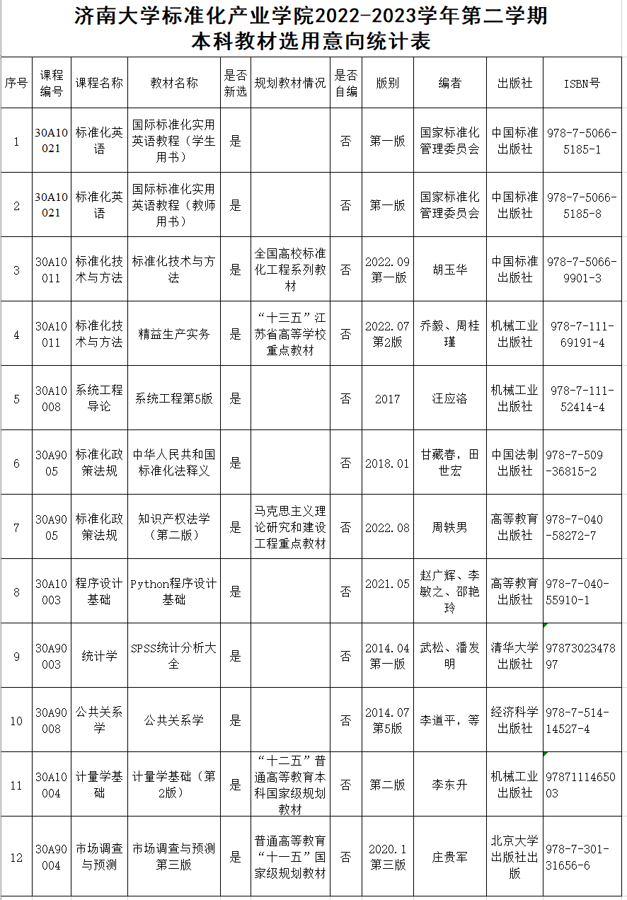 台湾av女优 标准化产业台湾av女优 2023年春季本科教材选用意向统计表