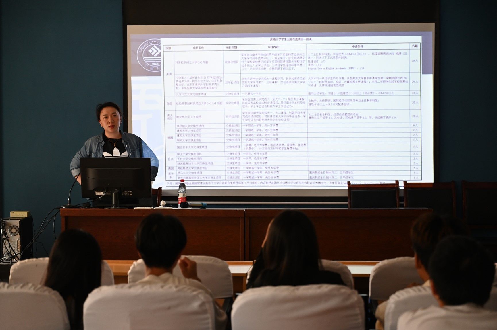 会议伊始,谢老师强调同学们要具备长远目光,学会做规划。对此谢老师分别从考研、出国、工作、考公四个方面对同学们进行讲解。之后,谢老师提出同学们要明确出国访学的目的,出国交流的初衷以及期望达到的目标,并从语言能力提高、体验不同文化以提升认知、个人成长与发展和学术提升与拓展这四个方面展开,并使在座听众得到启发。