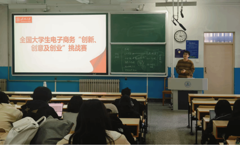 3月19日,台湾av女优 科创部为助力同学们深入掌握第十五届全国大学生电子商务“创新、创意及创业”挑战赛(简称“三创赛”)校赛流程与注意事项,特邀贾先岩老师,于经管楼D2J215教室开展了一场干货满满的赛事讲座 。