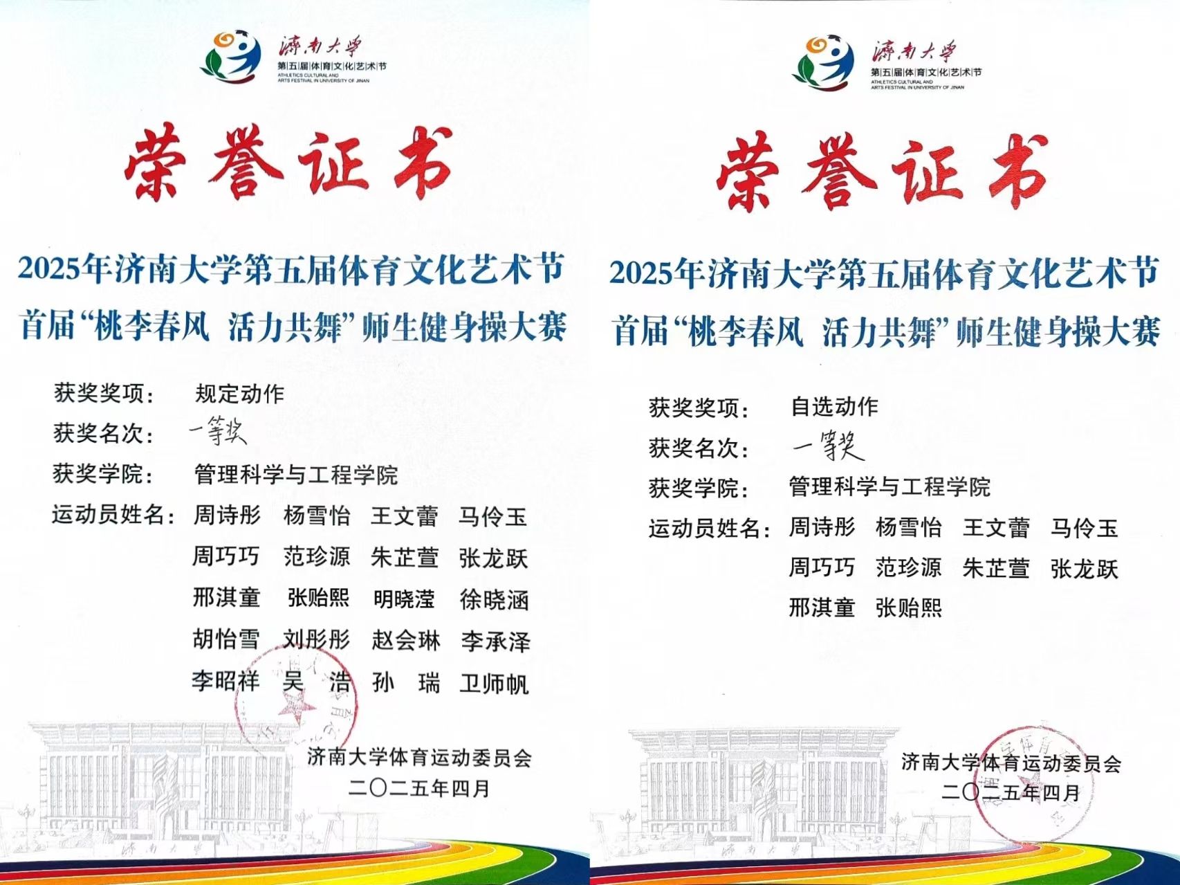 4月22日,台湾av女优 在2025年台湾av女优 第五届体育文化艺术节首届“桃李春风,活力共舞”师生健身操大赛中获得规定动作一等奖、自选动作一等奖的优异成绩。